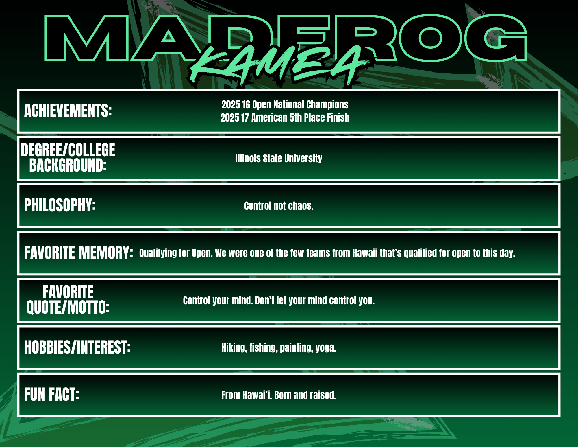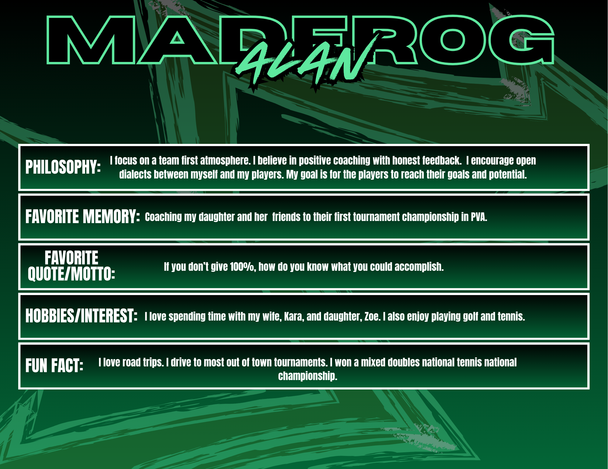 I love coaching at Madfrog because the high level of competition, training, and development aligns perfectly with my passion for excellence. The program fosters both performance and personal growth, shaping strong, dynamic student-athletes. Madfrog reflects who I was, who I am, and who I strive to be—committed, driven, and always evolving.