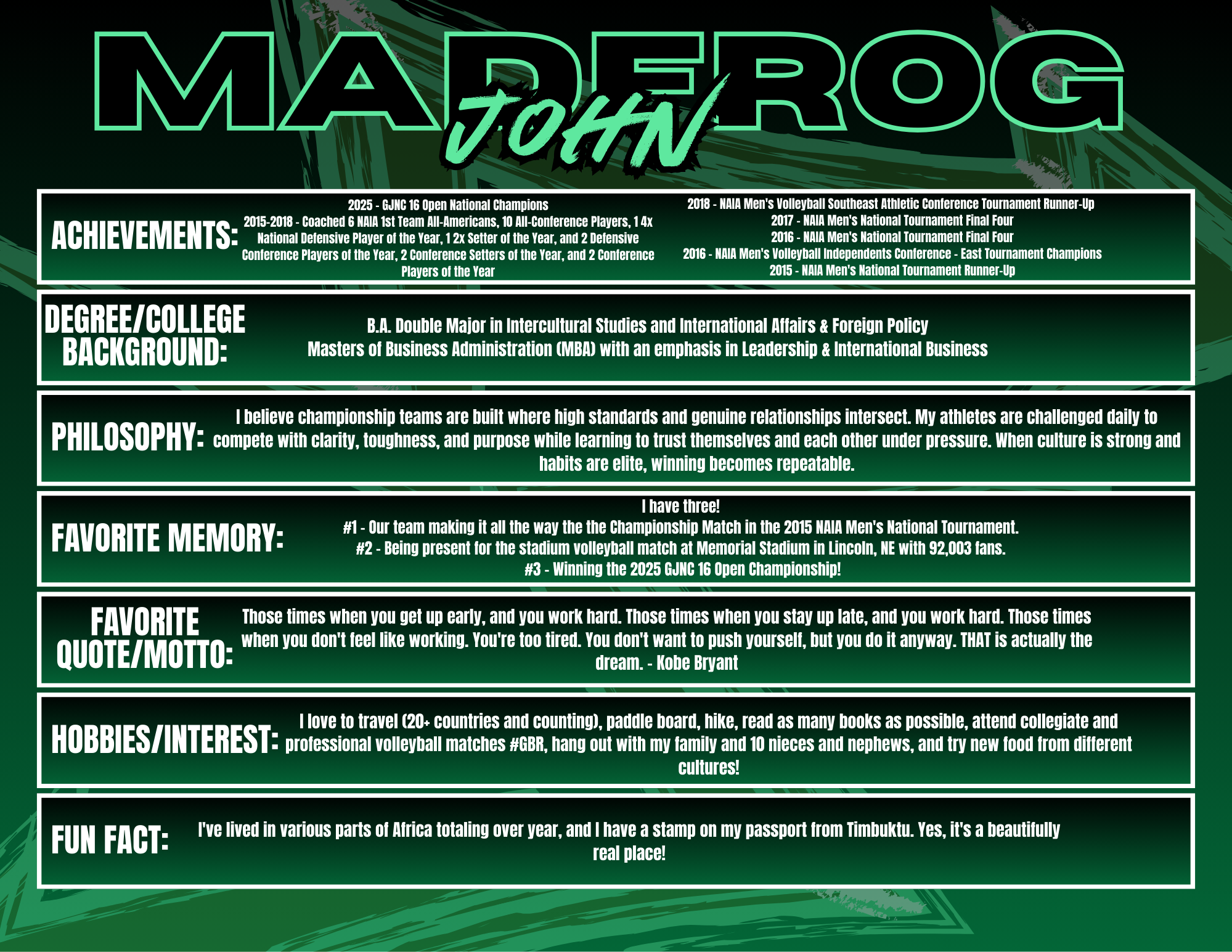 Love surrounding myself with other great coaches and players. Madfrog makes it easy to love coaching and being part of something special.